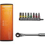 1/4"サイズビットが使用できる超薄型ビットラチェットと超短ビット4個の5点セットです。