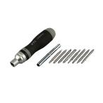 1/4"サイズビットが使用できる薄型ビットラチェットとビット11個に変換アダプターの付いた13点セットです。