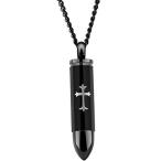 【神話広場】 ステンレス 製 ニトロケース ピルケース ロケット バレンタイン メモリアル ペンダント マルチ ネックレス 十字架 黒