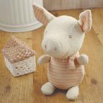 キュートな表情のブタさんのぬいぐるみはナチュラル素材。