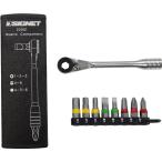 1/4"サイズビットが使用できる薄型ビットラチェットとビット11個に変換アダプターの付いた13点セットです。